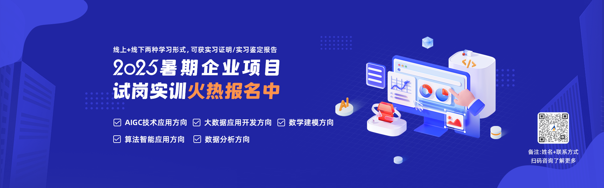 授課類(lèi)型多樣,包含師資培訓(xùn)、校內(nèi)實(shí)訓(xùn)、在線實(shí)習(xí)、高薪就業(yè)培訓(xùn)、企業(yè)內(nèi)訓(xùn)、省培國(guó)培;開(kāi)展形式豐富,包括線上遠(yuǎn)程教學(xué)、線下集中面授等方式,解決不同人群的學(xué)習(xí)需求。